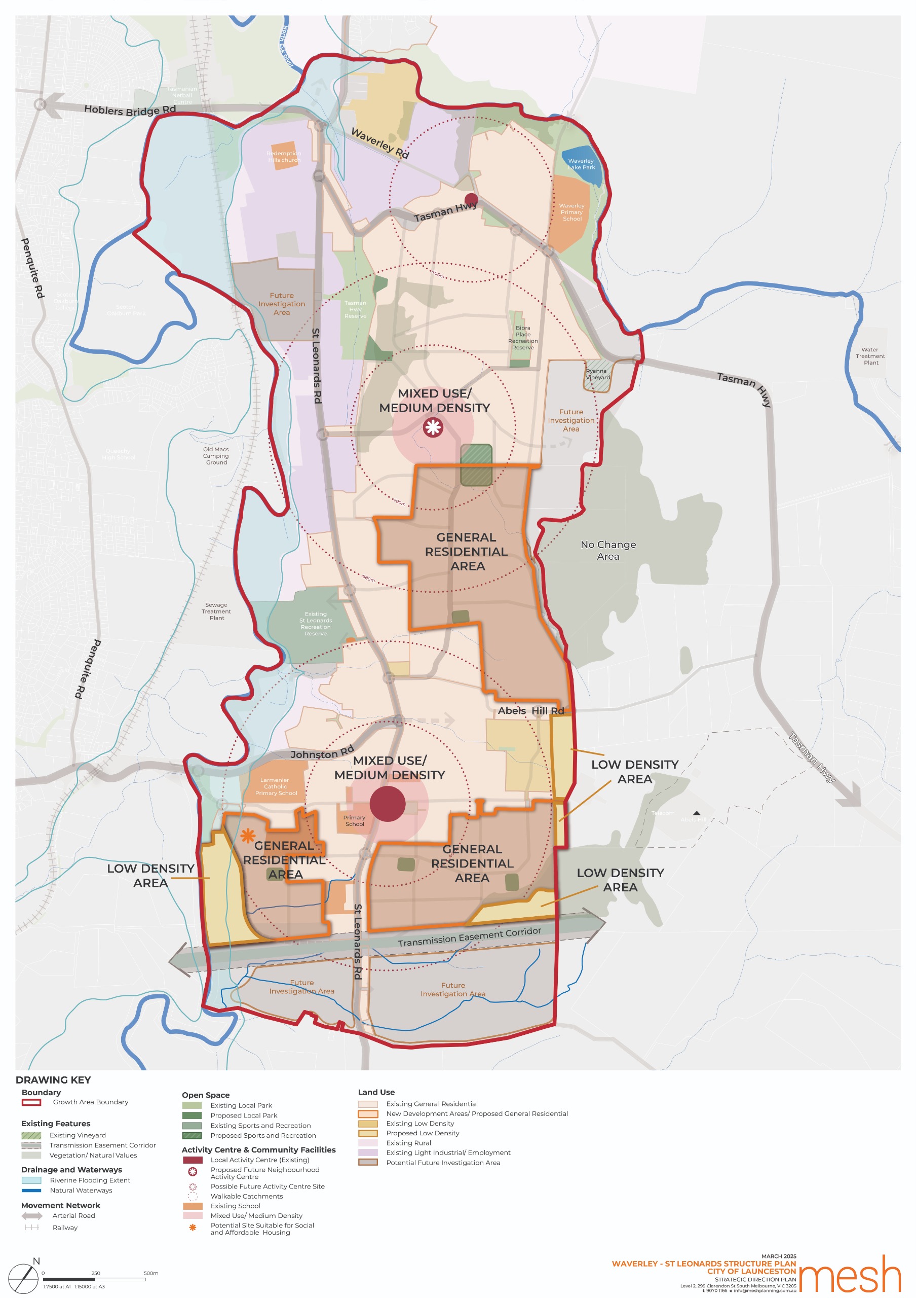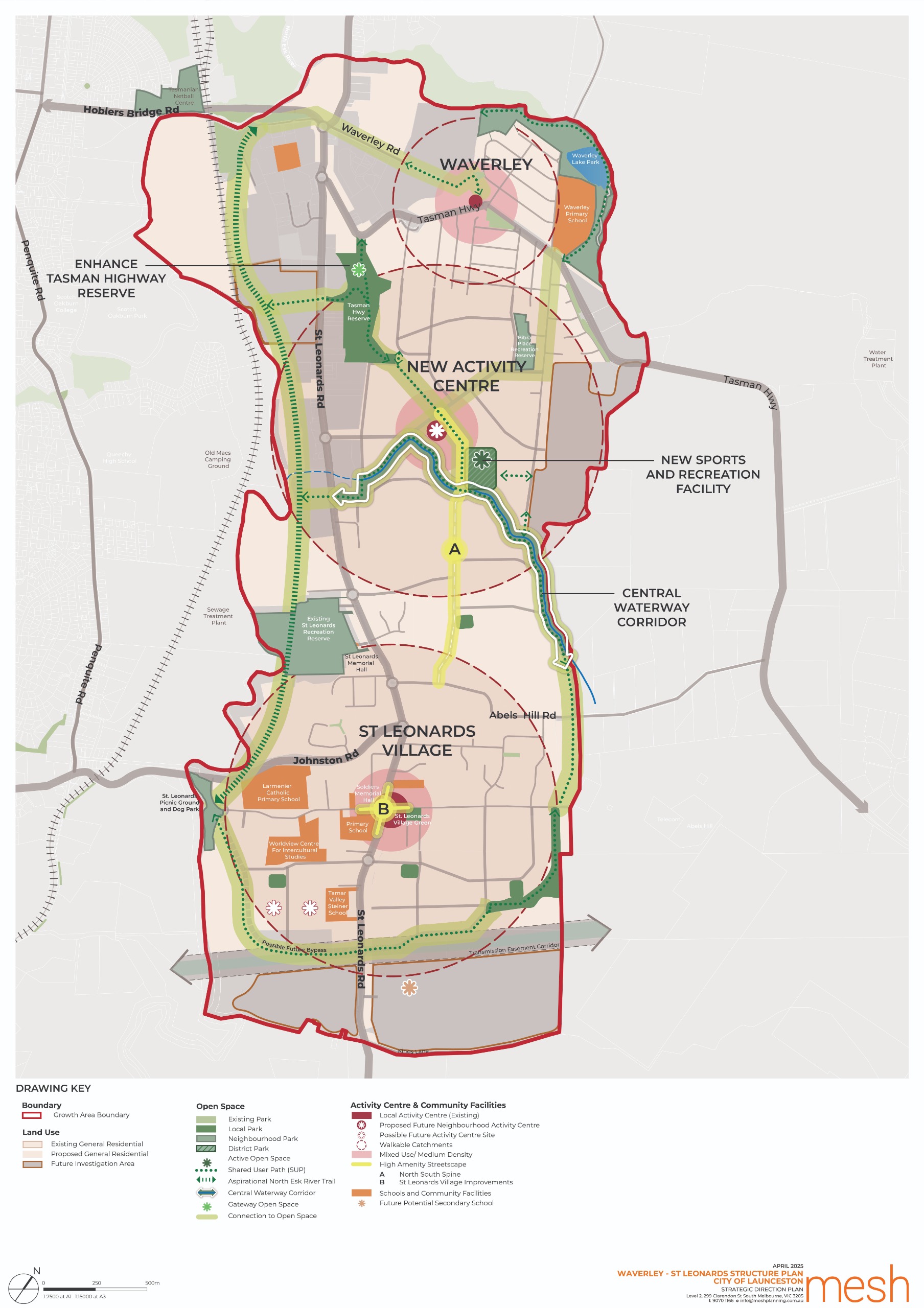 In 2014, the Greater Launceston Plan identified the St Leonards and Waverley area as a growth corridor. The Plan also identified the area immediately surrounding St Leonards as a Priority Investigation Area for residential development.